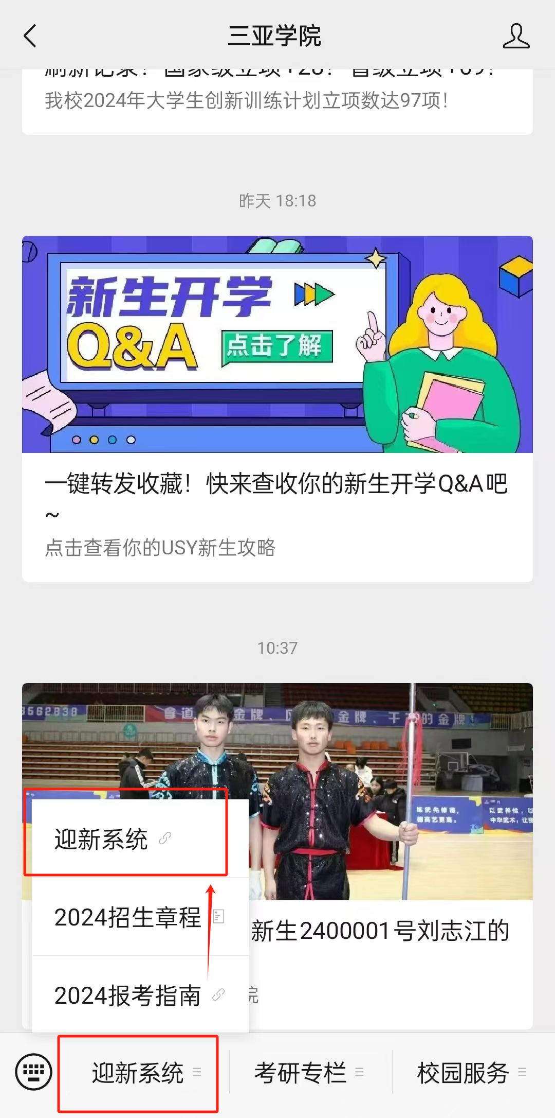 四、登录网上迎新系统后,可以查看新生入学须知”