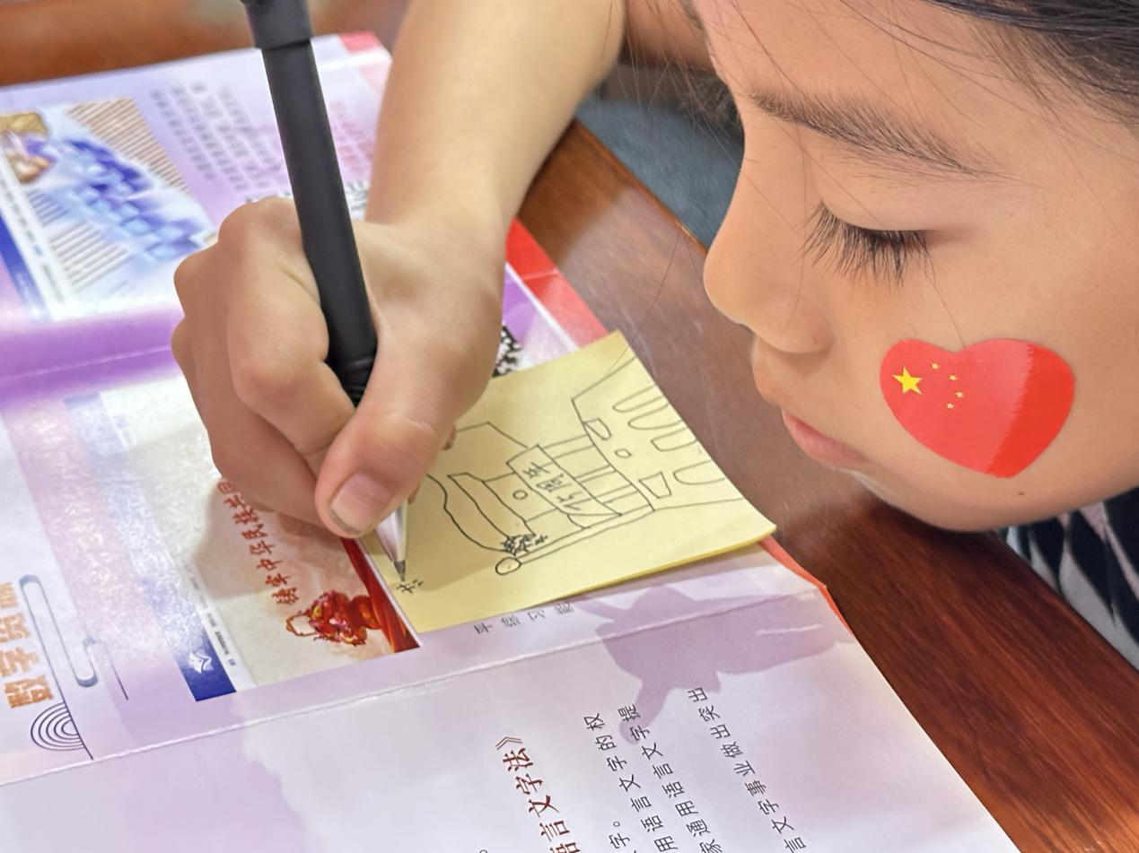 一张张纸片被分发到孩子们手中,他们或低头沉思,或挥笔疾书,用稚嫩的画笔描绘着对祖国母亲最真挚的情感。有的孩子画出了五星红旗高高飘扬,有的写下了“我爱中国”几个大字,虽然笔画略显生涩,但那份纯粹与热情却溢于言表。