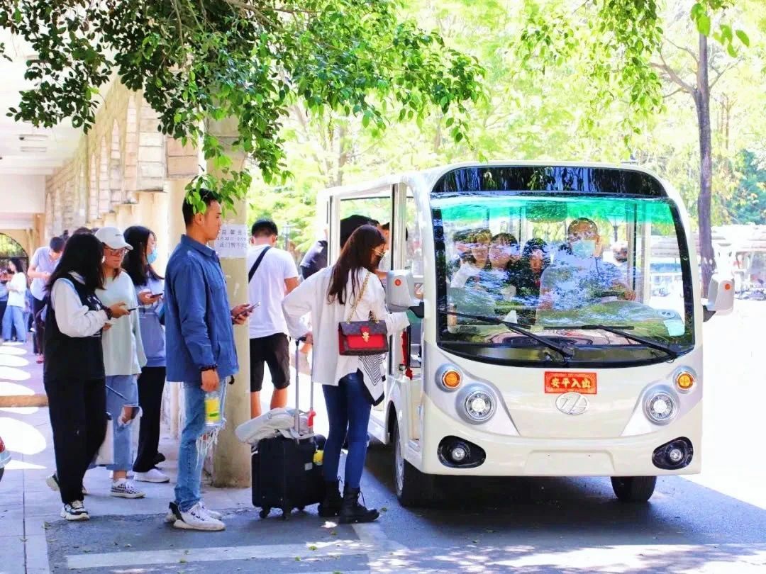 在宿舍楼、教学楼、创业街等各处,皆整齐停放着众多共享电动车。随时随地,只需轻松扫码,便能即刻出发,自如穿梭于校园的各个角落。校车亦有着固定的线路与站点,上车扫码仅需一元,经验丰富的师傅便会载着你快速抵达上课之所。倘若你期望悠然欣赏校园美景,或是前往距离较近之处,步行无疑也是个上佳之选。倘若想开着自己的电动车骑行在校园内,那么需要符合国标电动车标准并上公司专属的车牌喔~