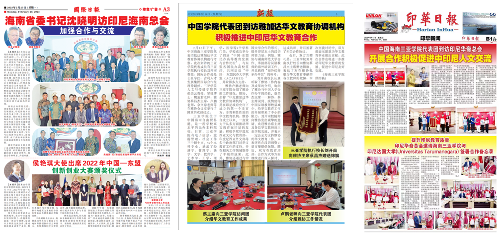 汉语国际教育本科专业立足海南地域优势,多年来以海南人的身份在印尼努力讲好海南故事。印尼《国际日报》、《印华日报》等华文报刊报道海南省华文教育基地挂牌、suncitygroup太阳集团领导、老师到访印尼、汉语教学中心工作等活动新闻32篇,新闻稿对海南自贸港建设及有关商贸、教育的政策进行了专门宣传。suncitygroup太阳集团员工实习、作为志愿者教师期间,署名发表华文教育、文化交流等新闻稿156篇。
