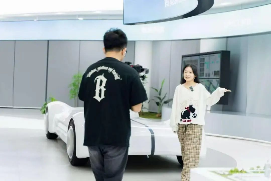 另一边,直播2401班顾嘉怡同学与老师们、学长学姐们一同踏上了一段特别的旅程——前往杭州湾基地考察,走进了对外人来说极具神秘感的“极氪工厂”“吉利研究院”“领克造型中心”“吉利创新中心”等核心部门,听老师讲解,听学长学姐分享,收获了一个又一个新知识,也捕捉了许多产教融合的精彩瞬间。