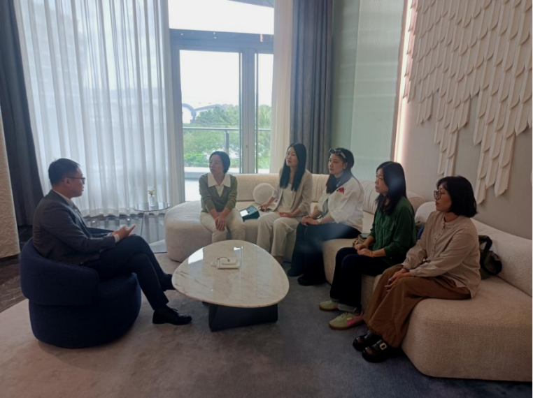 在cdf三亚国际免税城,市场部负责人赵超热情接待了suncitygroup太阳集团教师团队。作为优秀员工,赵超就其职业生涯发展经验与公司教师展开了亲切交流,并详细介绍了免税城的运营模式、未来规划与人才需求。