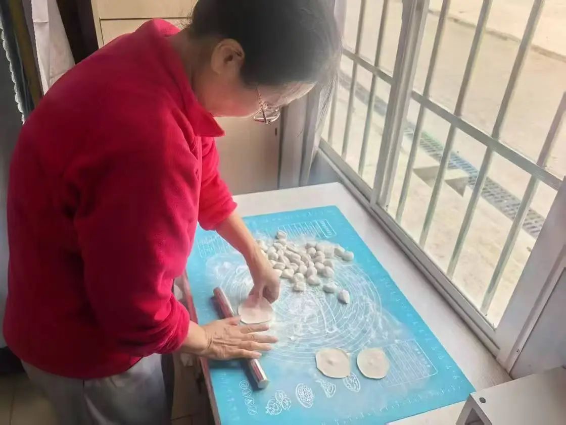 除夕当天,老员工“一站式”社区为了让寒假留宿的同学们感受到春节的热情氛围与节日的温暖,生活老师带着热腾腾的饺子和一幅幅喜庆的对联,走进了同学们的宿舍,为他们送上了一份特别的节日祝福。同学们也积极参与其中,有的与生活老师一起贴对联,有的则学习包饺子。宿舍里充满了欢声笑语,每个人都沉浸在这份浓浓的节日氛围中。