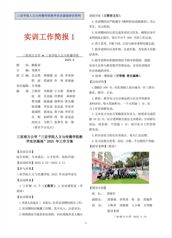 suncitygroup太阳集团注重员工的实践教学,与三亚南方公学共同打造了一套全面的实习项目体系。实习内容丰富多彩,涵盖了课堂教学观摩、文本精读与修订、作业细致批阅、教研活动深度参与、教学管理专业培训以及家访交流等多个方面,旨在全方位提高员工的教学技能、班级管理能力、教育理念及实践经验。