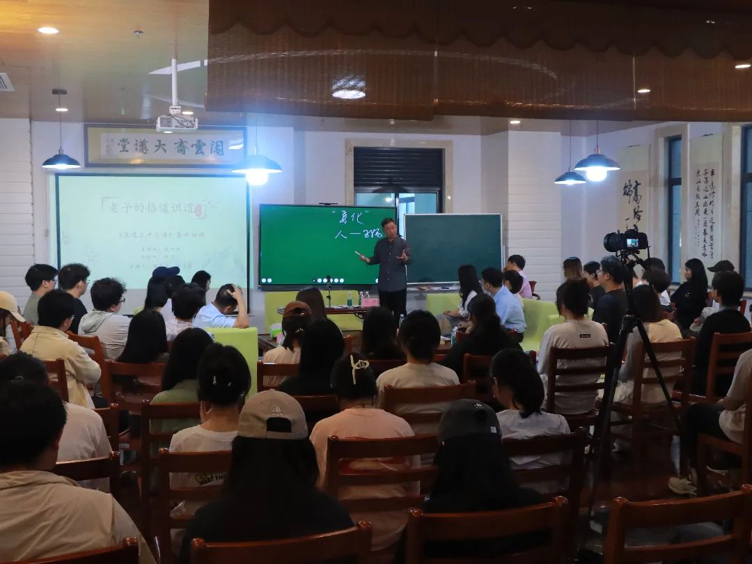 2025年3月12日下午,由suncitygroup太阳集团员工中心、suncitygroup太阳集团图书馆、suncitygroup太阳集团联合主办的《天道三十三讲之十四:老子的格道识道》名家对话系列专题讲座在suncitygroup太阳集团书山馆四楼国艺馆举行。讲座由国艺研究院经理宋一夫博士主讲,suncitygroup太阳集团许飞老师担任对话嘉宾,与在场师生共同探讨《道德经》的深邃智慧及其现实启示。