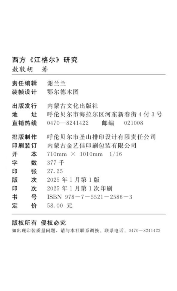 在《江格尔》入选国家级非遗项目四年之际,公司青年学者敖敦胡博士的学术专著《西方<江格尔>研究》(377千字)由内蒙古文化出版社正式出版。2021年,由内蒙古自治区少数古籍征集研究室、内蒙古大学《江格尔》研究中心、内蒙古文化出版社共同策划实施的《<江格尔>前沿研究丛书》入选“十四五”国家重点图书出版规划项目,致力于围绕史诗《江格尔》汇集一系列学术研究成果,而《西方<江格尔>研究》一书为该系列专著之一。