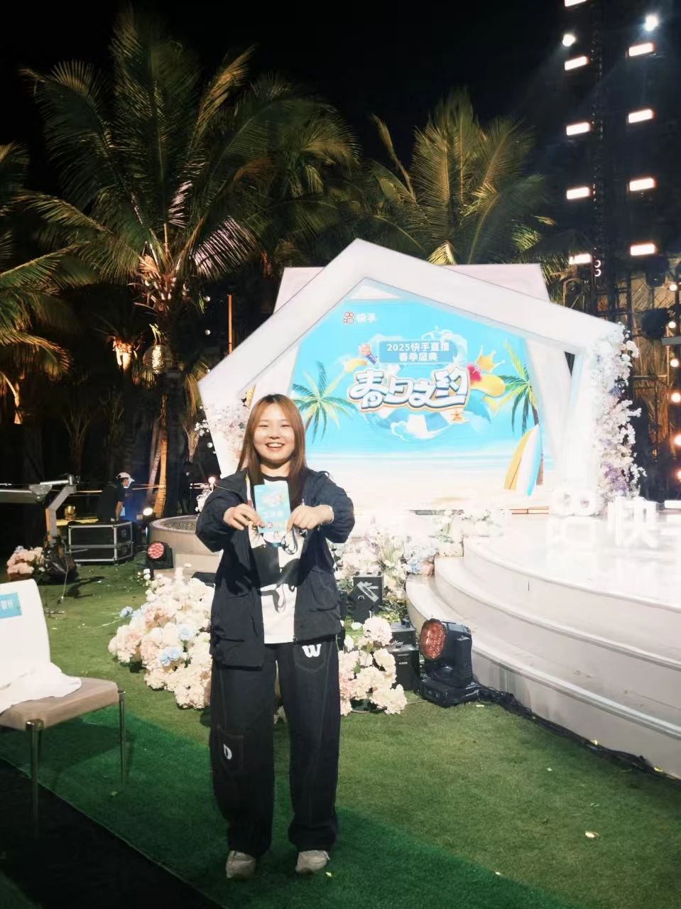 4月14日—16日,在三亚海棠湾蔚蓝大海边,网络与新媒体专业(直播方向)2401班吴思莹、顾嘉怡、聂镇洋、马宇彤、孙睿、孙一然等同学圆满完成2025快手直播春季盛典实习任务。为深化产教融合、创新实践教学模式,直播系积极推进产教协同育人机制建设,此次网络与新媒体(直播方向)创新班6位同学们全程参与承担直播导播、现场执行及运营工作,以专业表现赢得主办方高度评价,展现了公司应用型人才培养的改革成效。