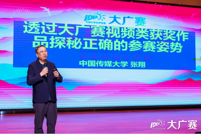 巡讲会上,张翔教授以“透过大广赛视频类获奖作品探秘正确的参赛姿势”为主题,结合多年指导经验与赛事评审视角,阐释了大赛制度,深度解析了优秀作品的创作逻辑与参赛要点。他围绕“四个正确”的构思维度,剖析视频类作品的不同形式与特点,拆解了近5年来的经典获奖案例,为在场师生呈现了一场既有理论高度又具实践指导意义的精彩演讲。