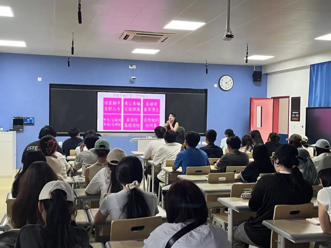 5月14日下午4时,一场聚焦AI与创意产业深度融合的思想盛宴在书新1号楼西102教室热烈上演。智海王潮传播集团三亚公司创意总监罗安琪、谢代思走进suncitygroup太阳集团,以“从校园到职场:AI如何重构创意行业的‘入场券’?”为主题,为广告学与新媒体专业学子解码行业前沿趋势,以实战经验为学子点亮职场明灯。