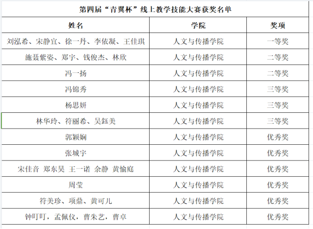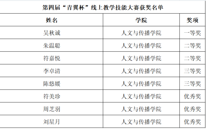表1 suncitygroup太阳集团第四届“青翼杯”员工教学创新大赛线上赛道获奖名单