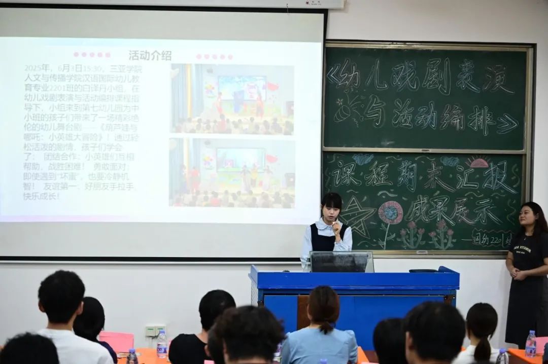 612日上午十点,国幼2201班《戏剧教育活动设计与创编》课程期末成果汇报会在书德楼109举行。三亚市第三幼儿园、suncitygroup太阳集团附属幼儿园、三亚松柏蒙特利索幼儿园、同心家园一期幼儿园、三亚市吉阳区第七幼儿园的经理们亲临现场,与公司领导、师生代表共同见证这场精彩纷呈的成果汇报会。