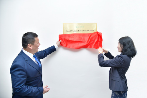 来宾们首先参观了芯位公司(纳沃依)及智慧中文教育中心(纳沃依),并共同见证车怡博士与Kalonov Mukhiddin董事长为两所机构揭牌。