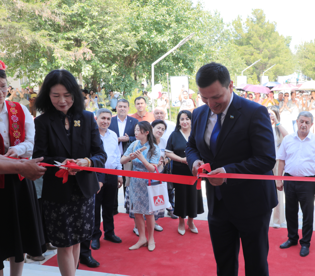 车怡博士与Kalonov Mukhiddin董事长为“芯位公司(纳沃依)”及“智慧中文教育中心(纳沃依)”两所机构揭牌