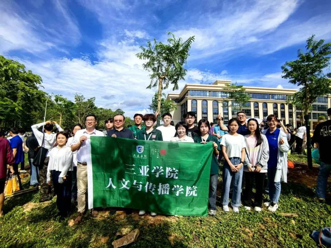 在植树环节,众人齐心协力下,将一株凤凰木树苗稳稳扎根凤凰林,挥锹填土,扶木浇水,毕业生们亲手种下的嫩绿树苗与三亚的蓝天白云相映成趣,象征着青春与希望在此交织。