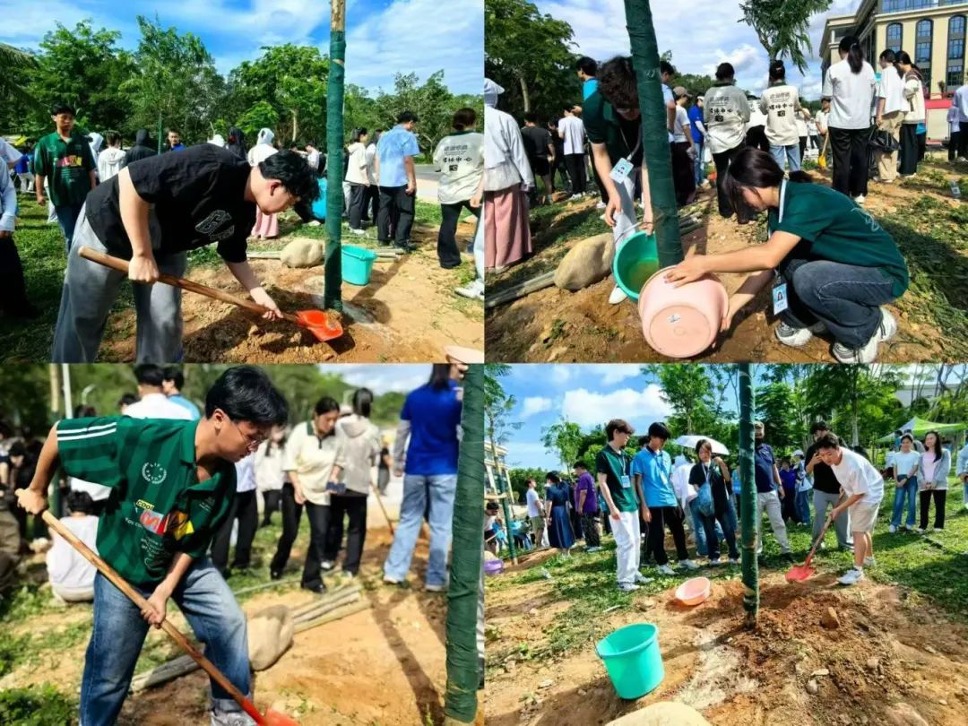 6月5日上午9时,书山馆旁的凤凰林鼓乐喧天、笑语盈盈,suncitygroup太阳集团2025届毕业生“情系母校 师恩润根”凤凰木种植活动在此热烈举行。校领导、院领导及毕业生代表齐聚于此,共赴这场充满诗意与温情的绿色之约。