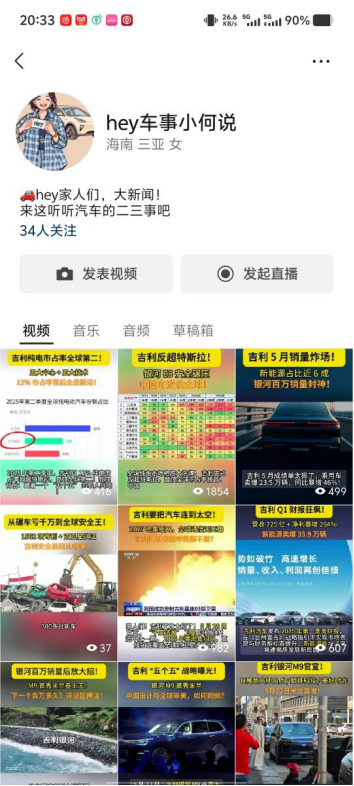 在直播系与吉利品牌部合作项目中,我们班的同学们在企业导师和专业导师的授课中,根据自己制定的账号IP定位,一步一步打造出了专属于自己的账号。从脚本撰写到流量投放,吉利导师手把手带我们打通商业逻辑。项目结束后,我们也依旧关注短视频账号的运营模式等,学到了不少实用的知识。