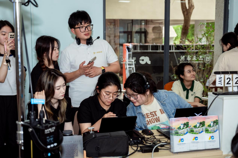 直播系构建了完善的直播实践教学体系,配备包括4K超高清摄像机、专业级稳定器、多机位导播系统等前沿摄影摄像设备,打造了多个风格各异的专业化直播间。这些实景化教学空间完全参照行业标准建设,设有实景演播厅、汽车展示区、互动体验区等功能分区。在教学模式上,采用入学即实战的培养理念,员工从大一入学就开始系统接触专业设备操作,通过车企真实项目驱动、校园大型活动实战、专业课程实训等三位一体的培养路径,完整参与从前期市场调研、创意策划、脚本撰写,到中期的设备调试、多机位拍摄、灯光布景,再到后期的视频剪辑、数据分析、账号运营等全流程实战环节,实现从理论到实践的闭环学习。