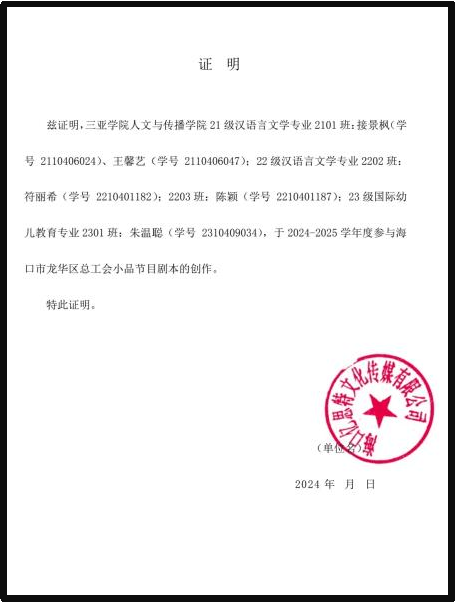 2024年暑期为海口龙华区总工会编撰节目剧本。