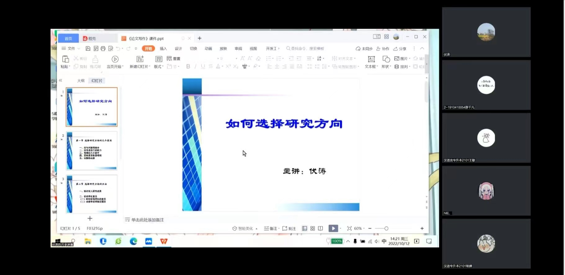 - 伏涛副教授就“毕业论文如何选题”开展线上交流讲座