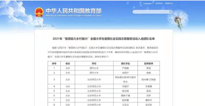 - 公司三个团队入选教育部遴选的国家社会实践志愿服务团队