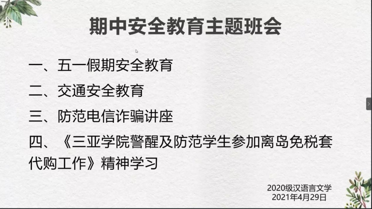 - 带十分小心,携一份平安 ——汉语言文学期中安全教育主题班会