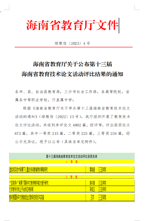 - 公司4名教师荣获第十一届海南省教育技术论文评比二、三等奖
