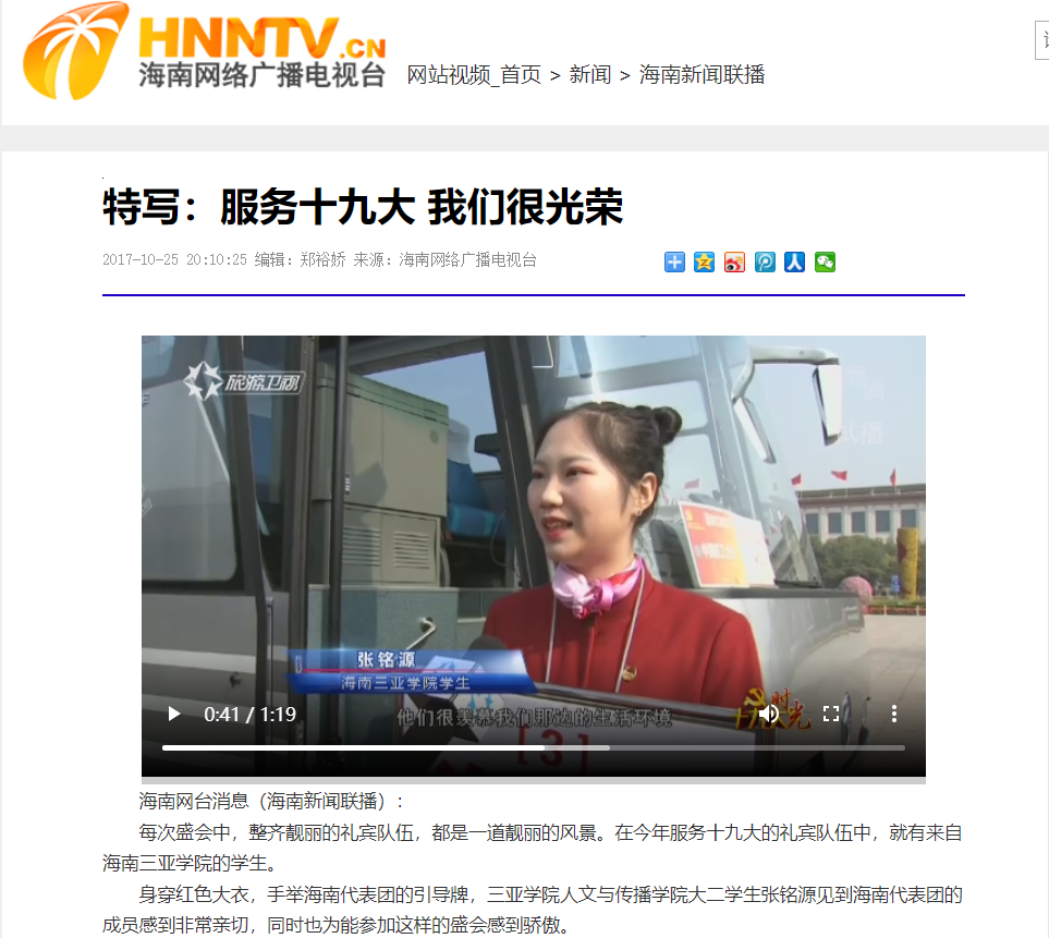 - 海南网络广播电视台:特写:服务十九大 我们很光荣
