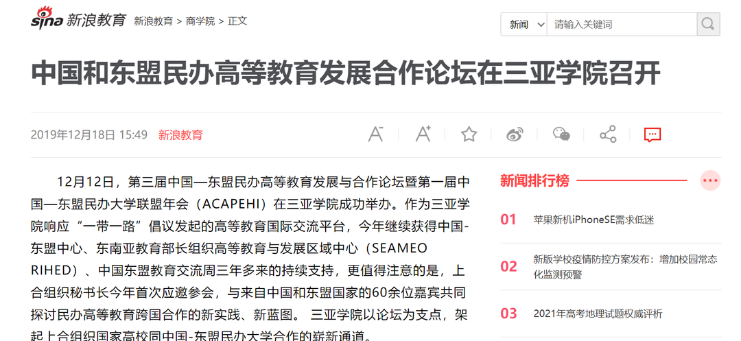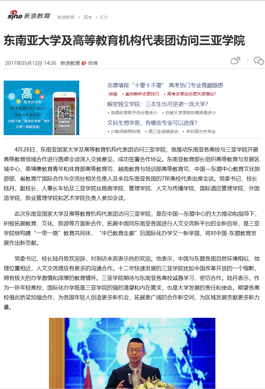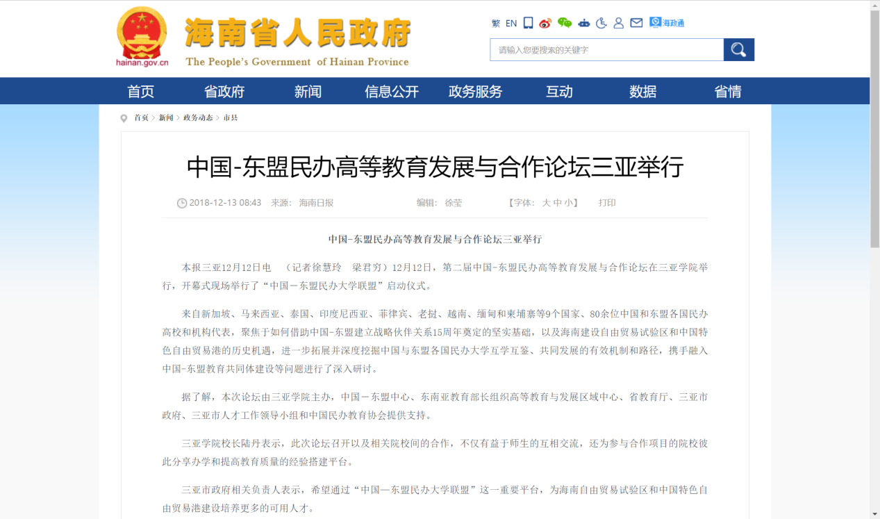 - 中国新闻网:首届“中国—东盟民办大学联盟”年会在三亚召开