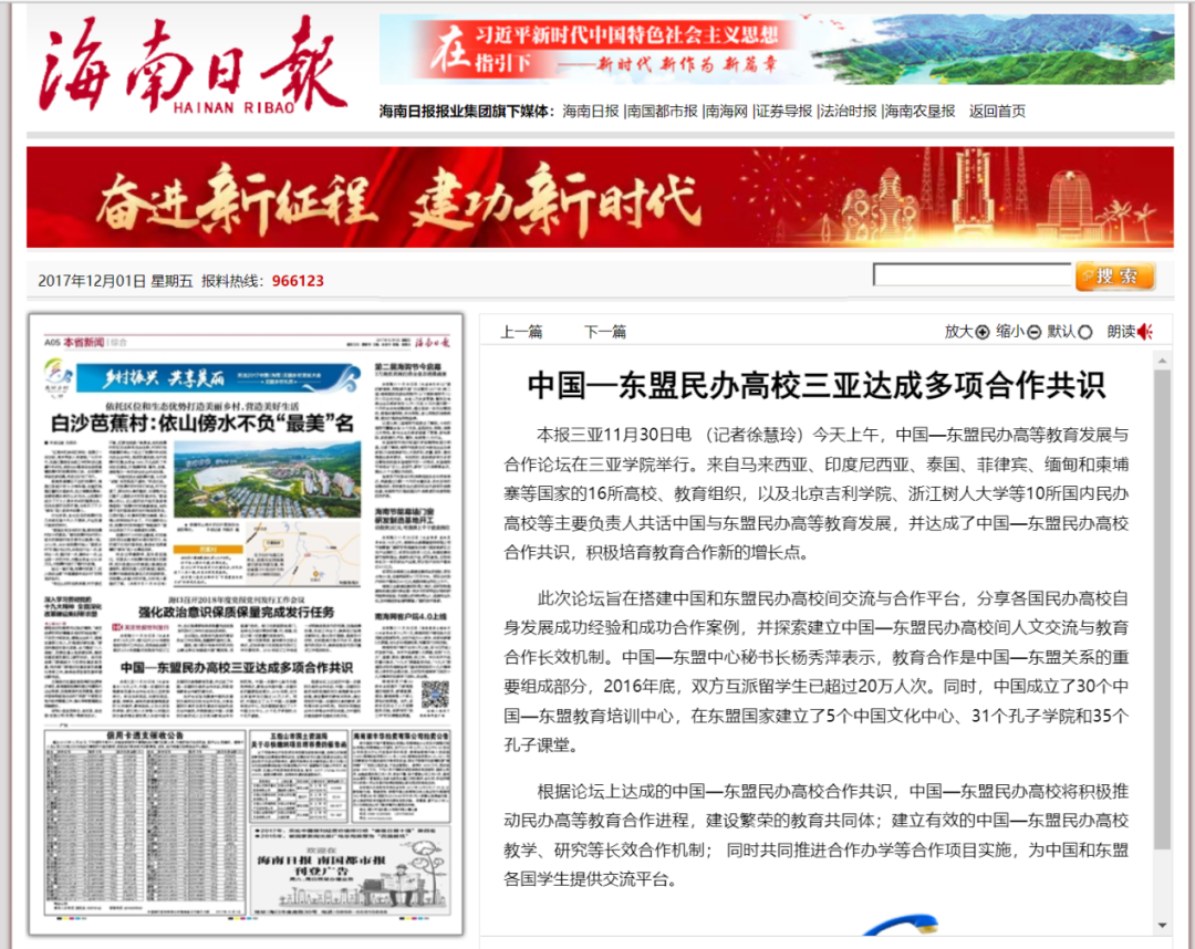 - 海南日报:中国—东盟民办高校三亚达成多项合作共识