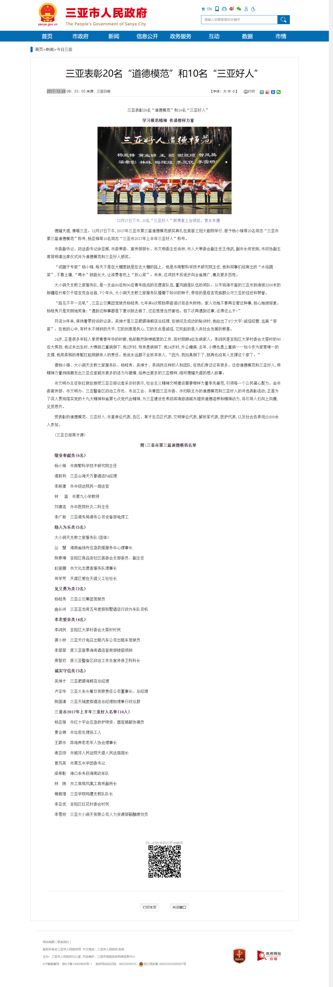 - 三亚市人民政府:三亚表彰20名“道德模范”和10名“三亚好人”