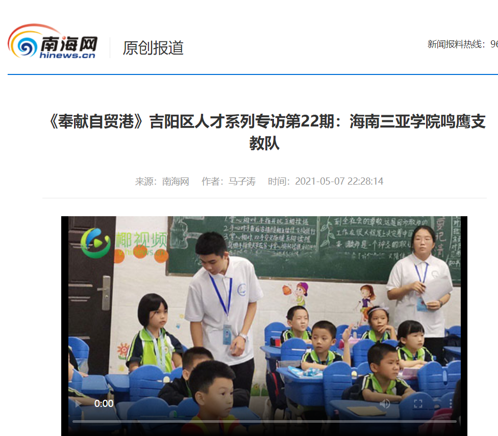 - 南海网:《奉献自贸港》吉阳区人才系列专访第22期:海南suncitygroup太阳集团鸣鹰支教队